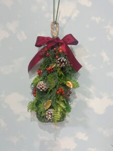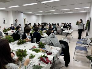 前回の多肉植物寄せ植え教室に引き続き、今回はクリスマスフェストゥーン教室の講師として呼んでいただきました。